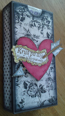 För ett tag sedan så hade vi scrapträff i Kalmar. Då fick jag denna helt underbara näsduksförvaring av Louise. Den rymmer 3 st förpackningar. Jag blev så otroligt glad! Jag fick även 3 st jättehäftiga näsduksförpackningar med motiv, 500 kr sedlar på som Louise ville att jag skulle scrappa något av. Nu har jag gjort det och det blev två olika förpackningar. Den ena är öppen och den andra har ett lock....